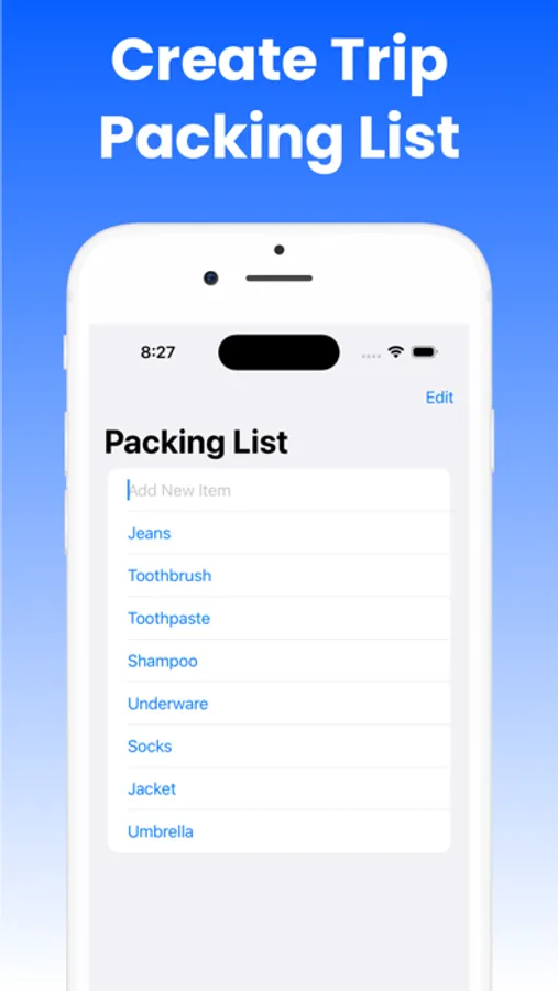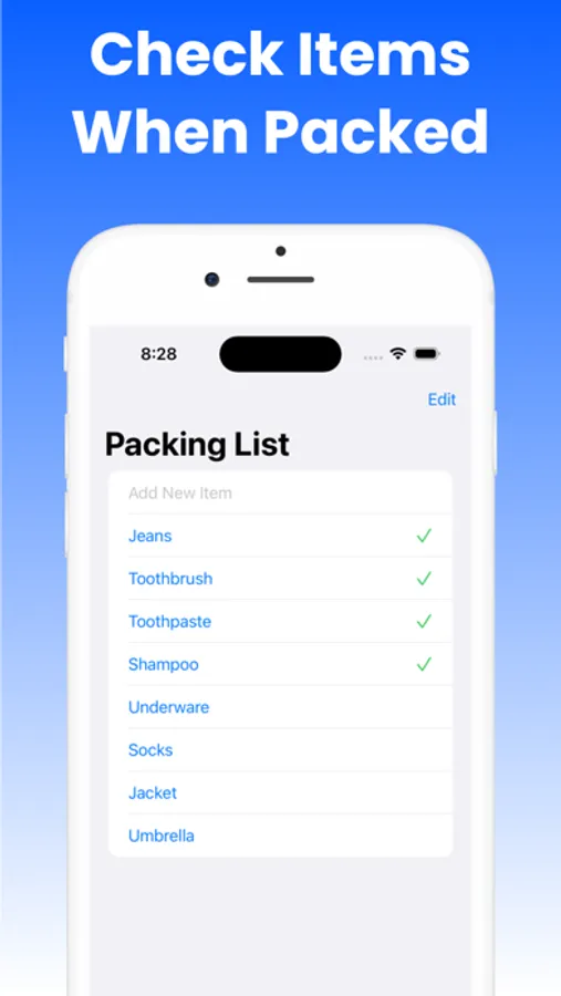 A very easy to use and efficient app to list and track of all of the items you need for a vacation, business travel or any other traveling. It uses the newest and best UI interface and is very simple to help you list your items that you want to bring with you and mark them as packed once you add them to your luggage. Never miss any items again that you need for your traveling.