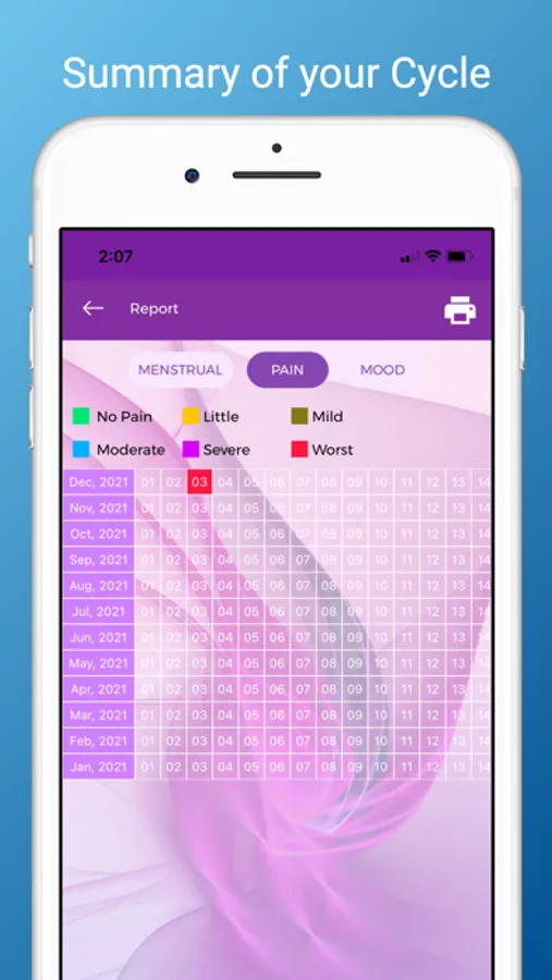 * Detailed reports for all symptoms up to 12 months that is downloadable