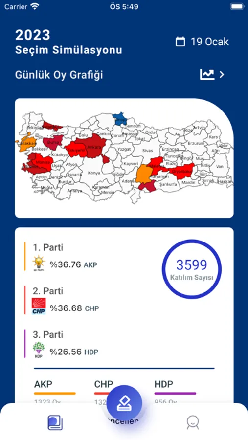 Anlık olarak, Türkiye'nin ve dünyanın dört bir yanından oy atan kullanıcılarla beraber partinizin seçimdeki başarısını takip edin.