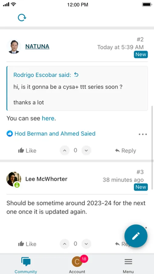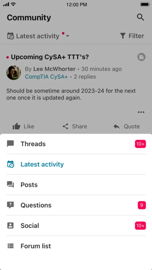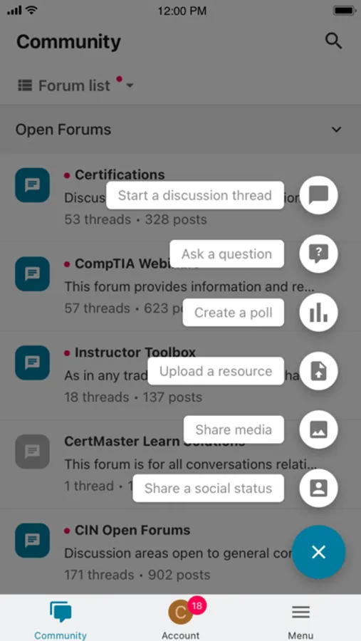 Welcome to the CompTIA Instructors Network community! Everything you loved about engaging with our community now in a mobile experience. Enjoy quick access to the latest activity, custom gesture support, and set preferences for what you receive notifications about.