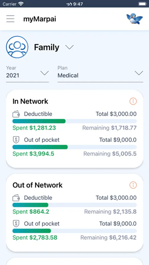 • Use the myMarpai SMART to track deductibles and costs, manage family health and carry your digital health ID card