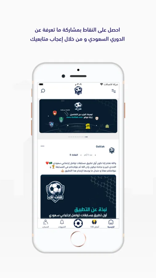 لك في الدوري السعودي ؟ لك في التواصل الإجتماعي ؟ انشر محتواك و اجمع النقاط ، نافس على قائمة ال 100 و ادعم جمهورك ، جوائز و ميداليات و الكأس يستناك