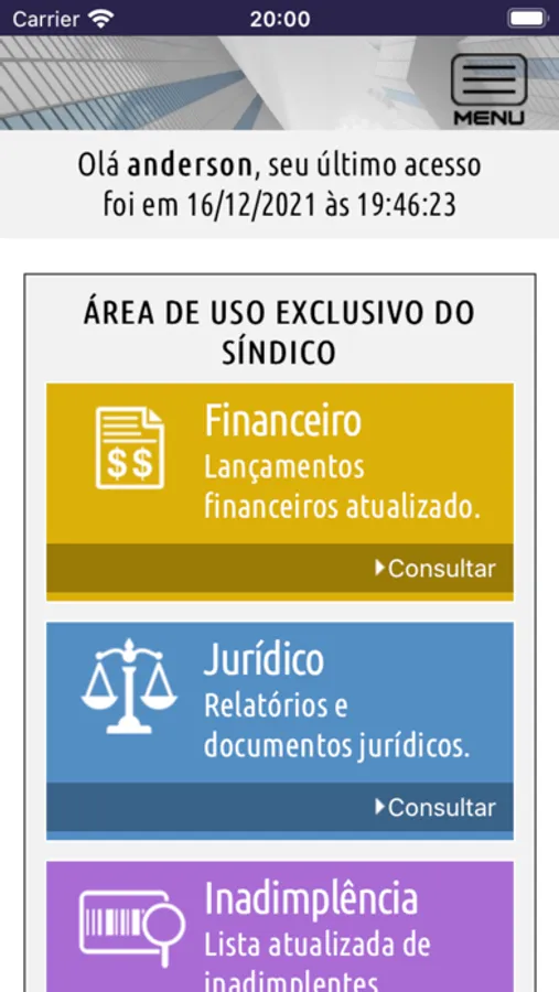Neste App é possível acompanhar os comunicados feitos pelo síndico, acesso ao financeiro, acompanhamento de relatórios e documentos jurídicos, informes de manutenção predial e muito mais.