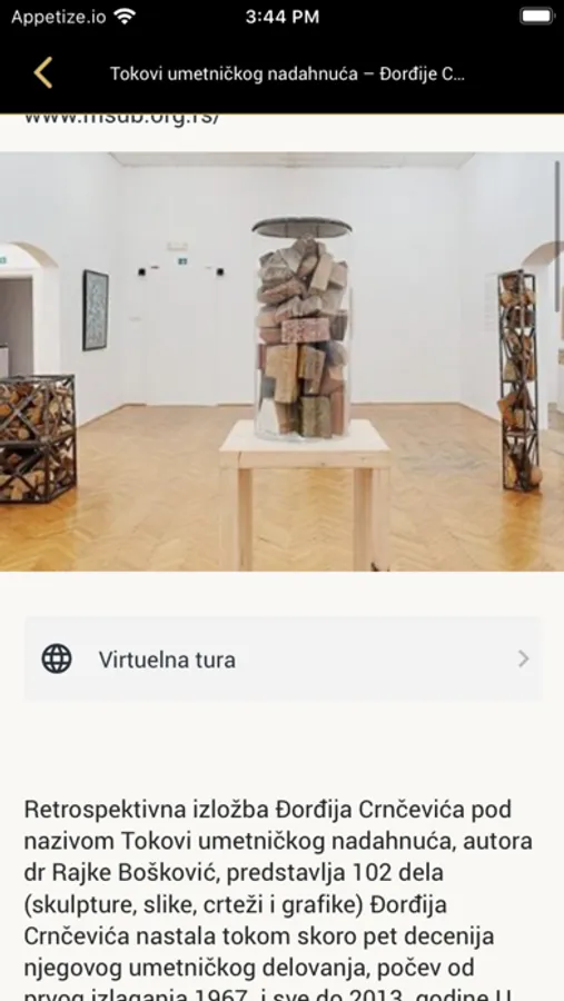 Mesto na kome ćete, bez obzira gde se nalazite, uvek imati priliku da, putem interaktivne virtuelne ture pogledate aktuelne i sve oneizložbe koje niste imali priliku da posetite. Cilj nam je da virtuelnim obilascima, približimo galerije i muzeje domaćoj i stranoj publici, doprinesemo očuvanju i promovisanju kulturnog nasleđa i omogućimo predstavljanje savremene umetnosti i drugih kulturno-umetničkih projekata široj publici.