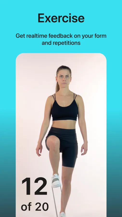 - Adherence analysis, real-time exercise form, and rep counting feedback. No extra hardware required.