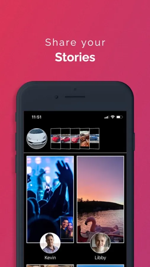 • Share your videos, pictures, or text to your social feed or story!
