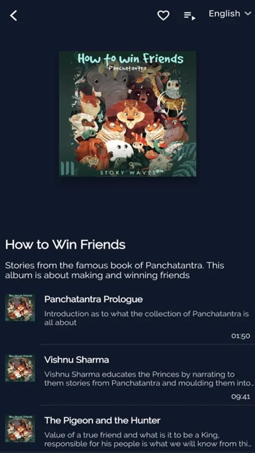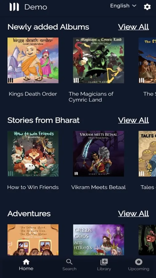 Subscribers can create playlists, add albums and stories to their favorites(Library). Subscribers have the luxury to modify languages for an album to experience stories in multiple languages. Currently the languages supported are English and Telugu with support for Hindi, Tamil languages to be released by end of the year.