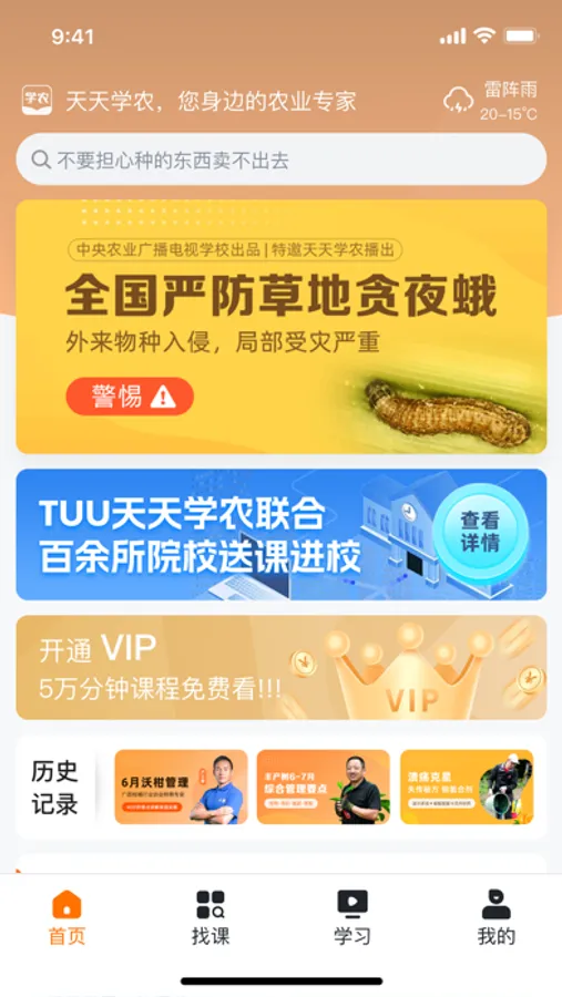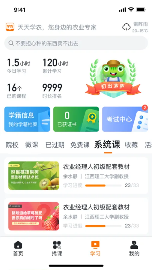 天天学农App是深圳市天天学农网络科技有限公司专为农民和农业从业者打造的在线学习平台,旨在提供高质量、实用、有趣的农业课程,帮助用户提升农业知识和技能,实现农业增效和增收。天天学农App涵盖了种植、养殖、农机、农药、农资、农业政策等多个领域,覆盖了从基础理论到实战操作的全方位教学,满足了不同用户的不同需求。