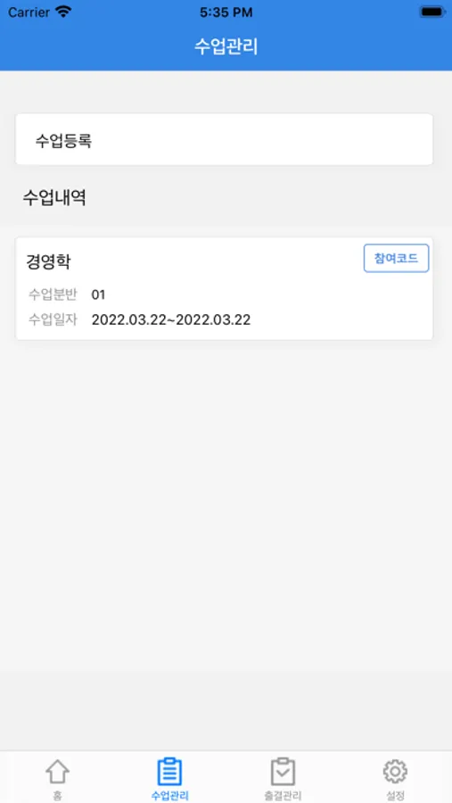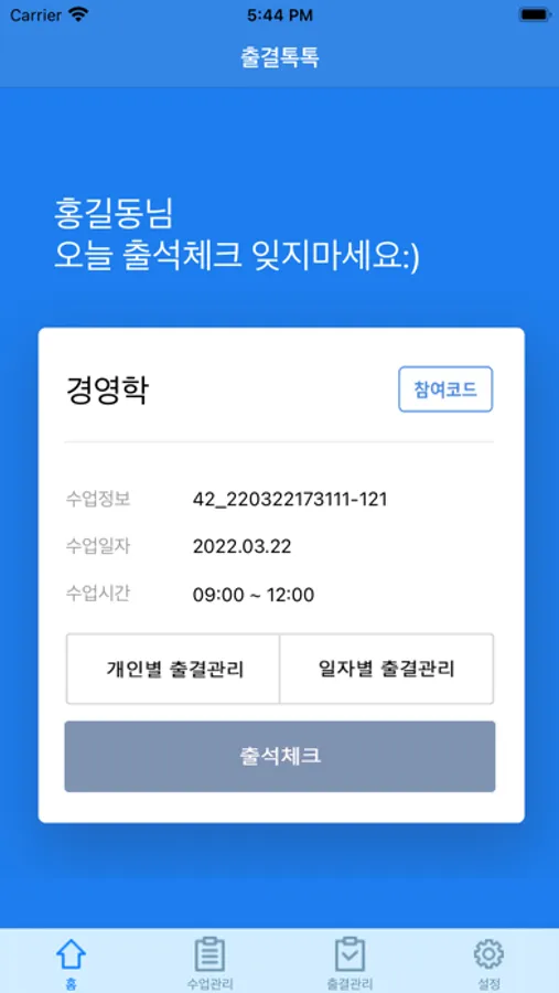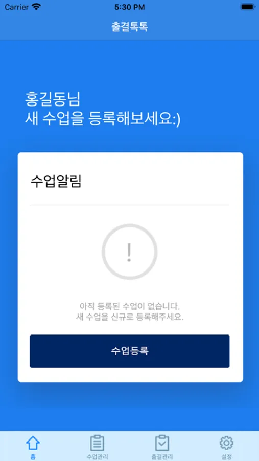 교수자의 수업을 등록하고 출석체크를 할 수 있습니다.