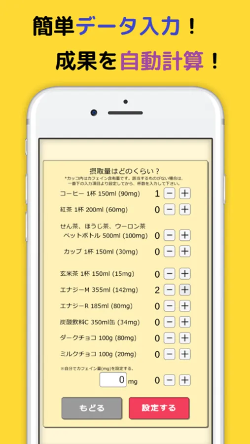 かんたん入力で気軽にスタート!頭痛や睡眠不足の改善のため、カフェインを我慢しよう。