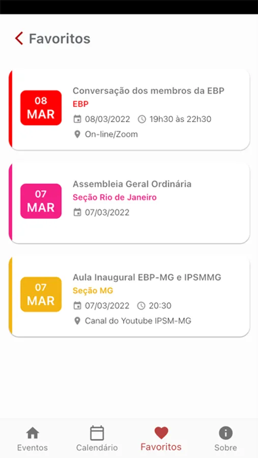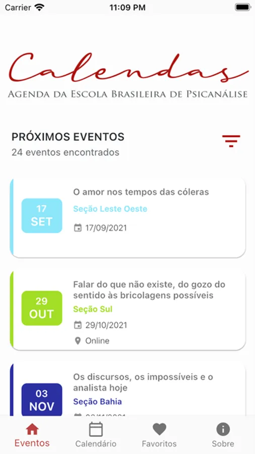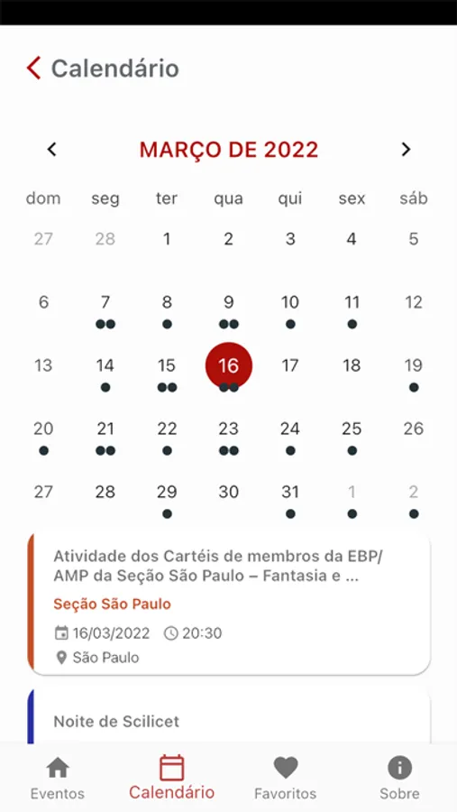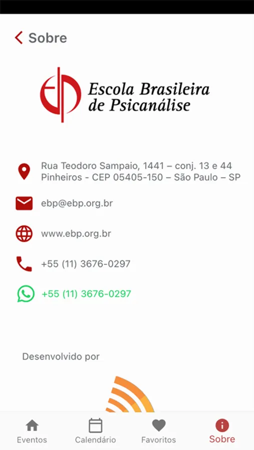 Aplicativo de divulgação de eventos da EBP - Escola Brasileira de Psicanálise