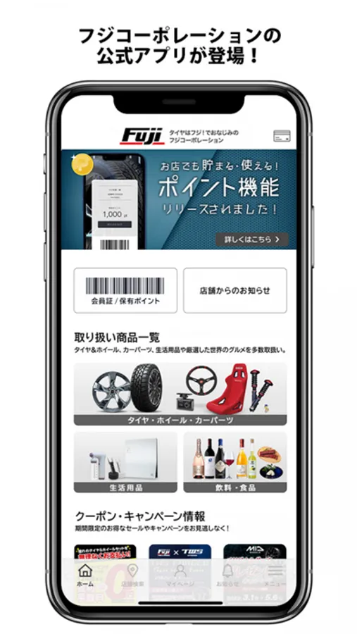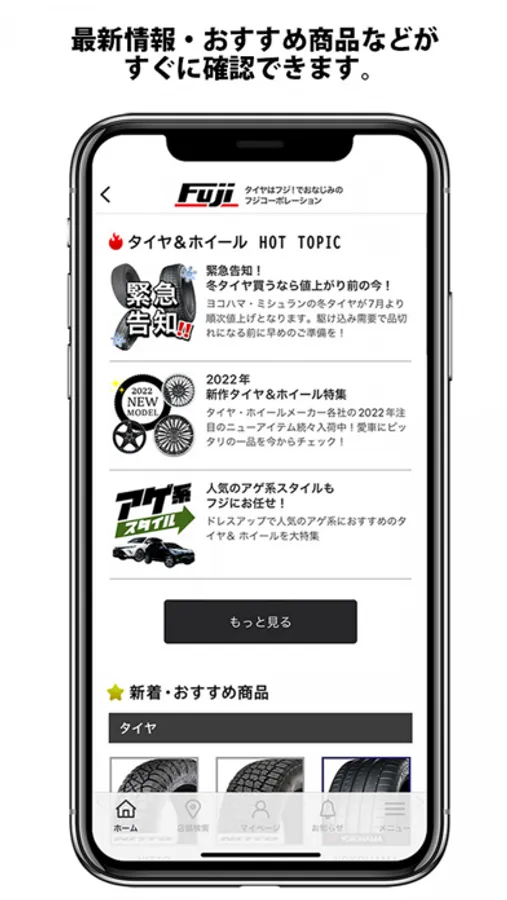 タイヤはフジ!でお馴染みのフジコーポレーションの公式アプリが登場。