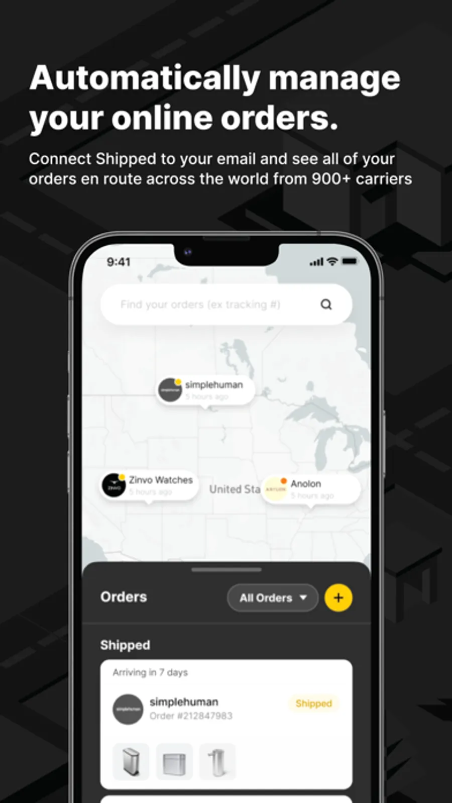 Connect to your email and automatically see all of your orders en route across the world from 900+ carriers including Amazon, UPS, Fedex, DHL and USPS.
