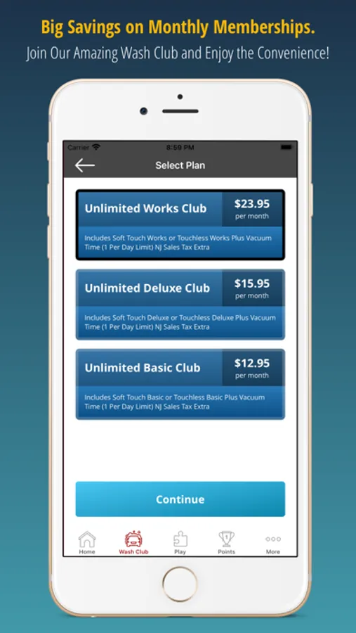 Our automatic wash levels are the Express, Deluxe and Works. Our Unlimited Monthly Wash Club offers a great value which pays for itself in just 2 washes per month, less than $1 per day. A great investment to take care of your car, truck or SUV. Discounts available for multiple cars under the same account.