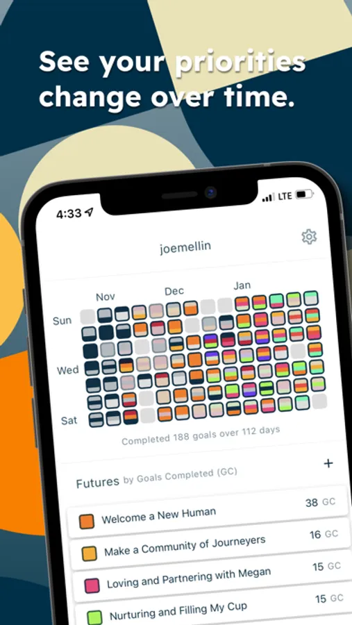 Each day, you have the opportunity to set 1-3 goals for yourself which are shared with the community. You can also create Futures that are things your daily work adds up to. This could be anything from getting in shape to reading that book you have on your shelf.