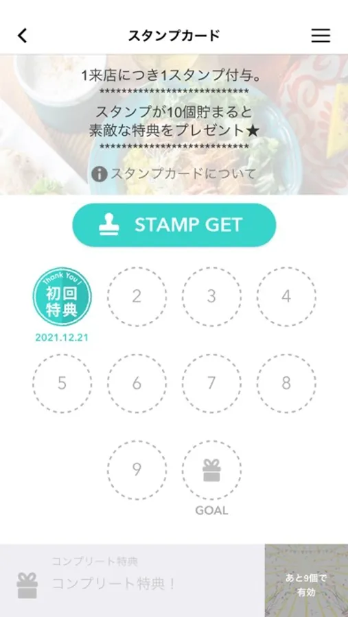 ・ご来店ごとにたまるスタンプカード。