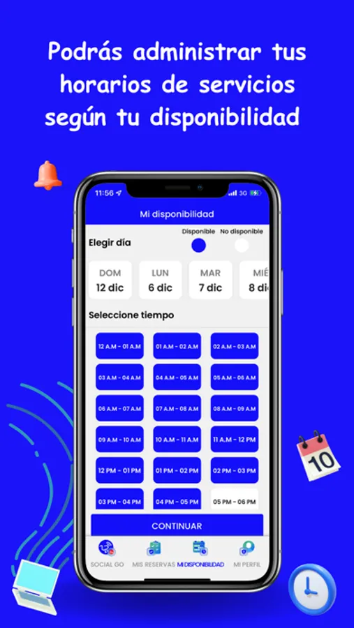 Tu manejas tu disponibilidad en un calendario incorporado en la aplicacion.