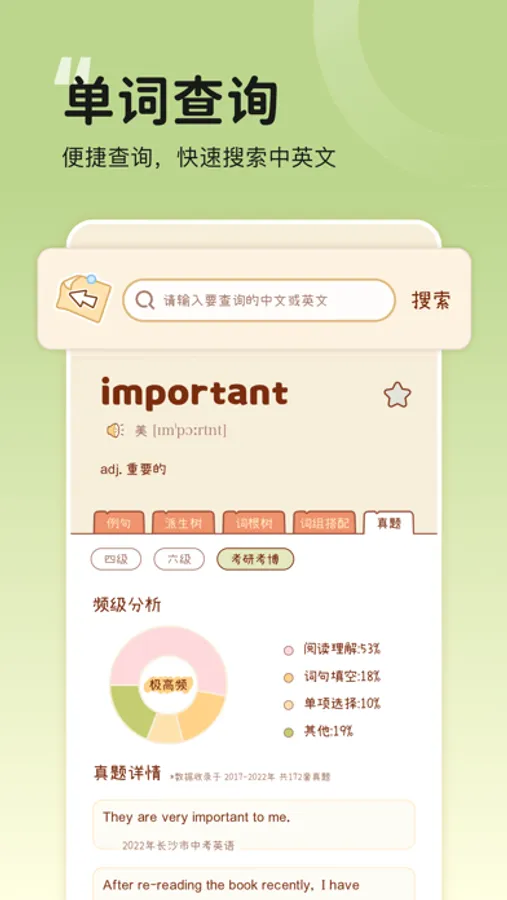● 高效率:轻松解决一词多义,且多重必考词义独立拆分,高效率背单词