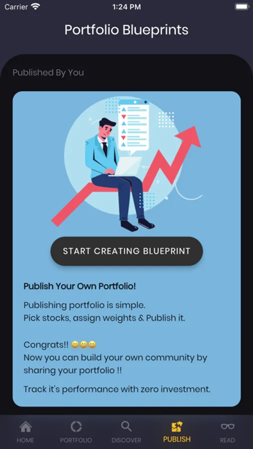 Sharing and bragging has never been this easy. Publish your portfolio blueprint and share it with your friends. Track the performance and let others follow.