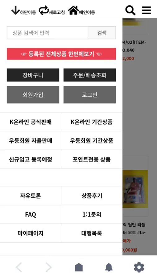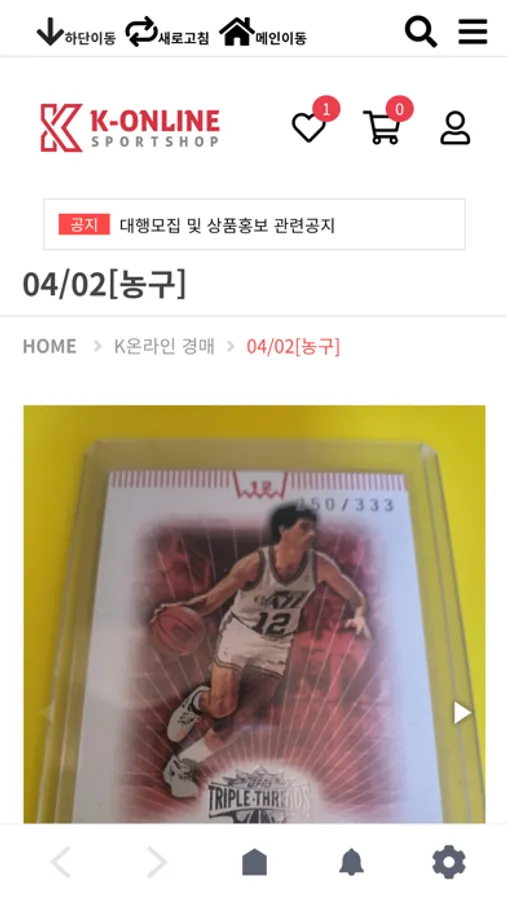 [케이온라인] 누구나 이용가능한 자유판매 자유경매 가 있는 플랫폼 원하시는 스포츠카드를 언제든지 즉시 구매,판매,경매 가능합니다