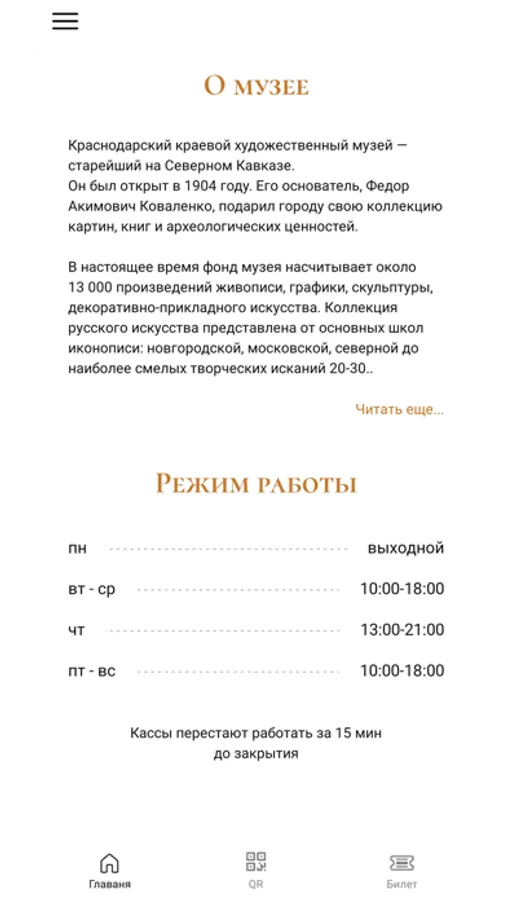 Музейный Гид предоставляет функционал покупки билета, непосредственно в мобильном приложении, Вам не надо стоять в очереди :)