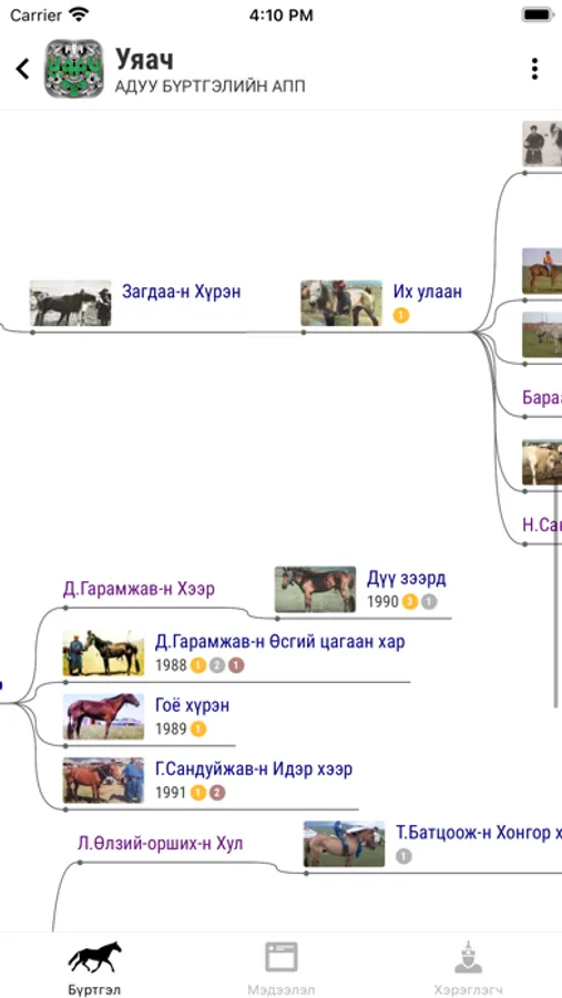 Удам хөтлөх: Адуу болгоны эцэг эх болон үр төлүүдийг үе үеэр бүртгэж удмын сан бүрдүүлж болно.