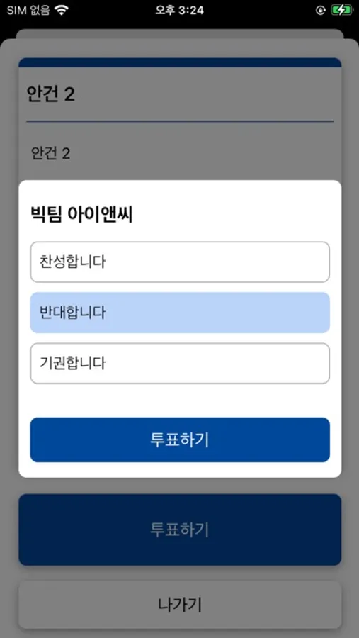 본 앱은 회의 진행에 대한 효율성과 사용자 편의성을 도모하기 위해 개발되었으며, 실시간 투표현황이 중계되도록 제작되었습니다.