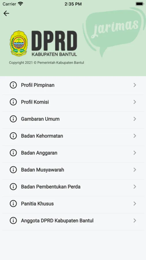 Merupakan layanan yang bertujuan menampung berbagai aspirasi masyarakat kepada DPRD Kabupaten Bantul baik Layanan untuk publikasi Raperda, Layanan untuk menampung usulan terhadap Raperda dan Layanan untuk publikasi informasi kegiatan DPRD.