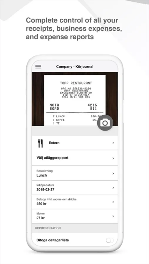 Simplified expense management of expenses, allowances and receipts for both small and large companies. Azets Expense is designed to support businesses and organizations to simplify every step in expense management through a user-friendly solution that is integrated with Azets other services. Paper receipts are photographed, interpreted and coded directly in the app. Azets Expense also handles Email receipts as well as digital receipts coming directly from the store. In the app, expenses, subscriptions and mileage are recorded as basis for electronic approval and payment reports. The information in Azets Expense is stored safely with access from both web browsers and directly in the app.