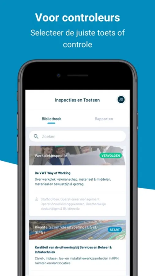 De inspectie en toets app biedt de digitale ondersteuning voor het uitvoeren van controles. Door ons werk zelf en door anderen te laten controleren, leren we iedere dag bij én zijn we in staat om continu te verbeteren. Zo kunnen we ons werk iedere dag nog beter doen.