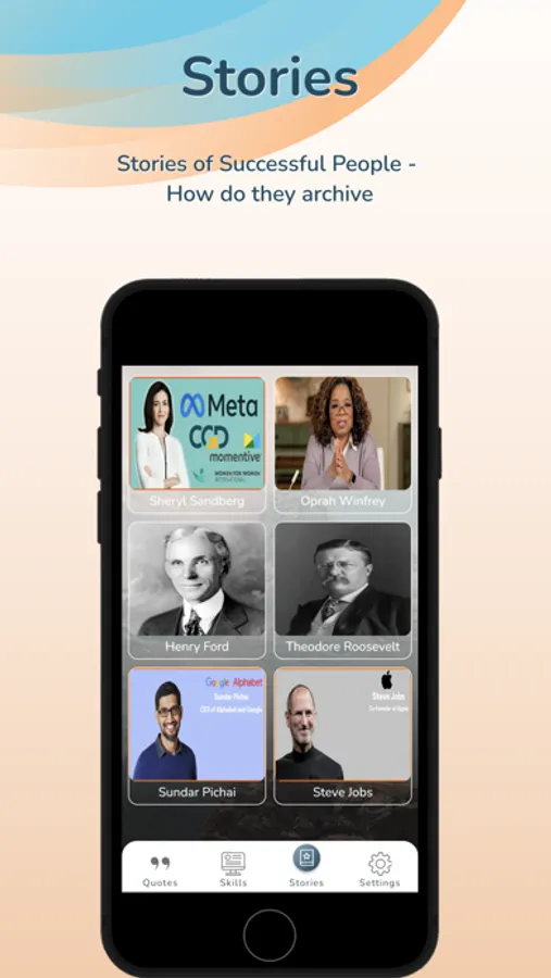 Success: Quotes, Skills, Stories application will give you a space to learn, cultivate knowledge, learn the path to success, learn lessons that successful, outstanding people share.