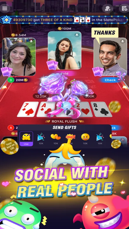 3. FRIEND SYSTEM: Follow poker masters on the World Ranking or players you met during the game! Send a nice gift or item to your friends, or sell your gifts for coins when you need to. Our constantly updated Coin Store will surely satisfy your expectation!