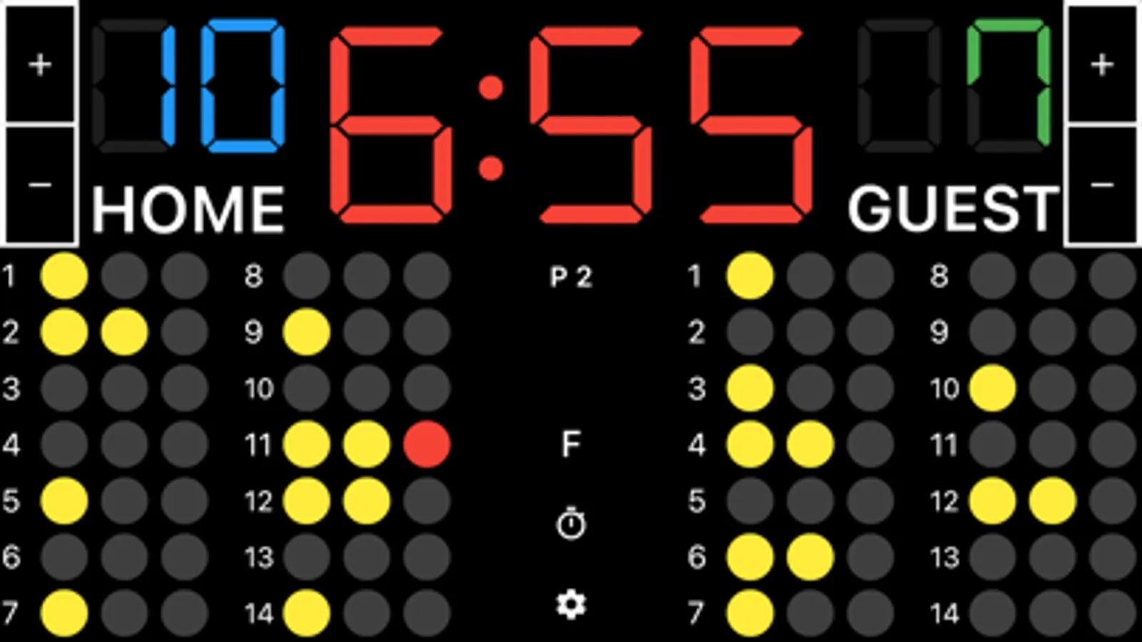 If your device is too small to tap a player, tap the "F" button on the center of the screen to display the fouls in full screen, making it easier to register the fouls.