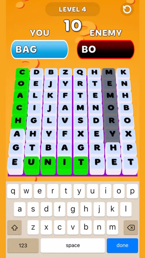 - Find more words & destroy the enemy with your characters.