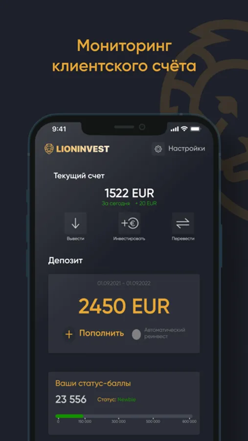 Приложение Lioninvest представляет целый набор сервисов, доступ к которым вы получайте сразу после регистрации: