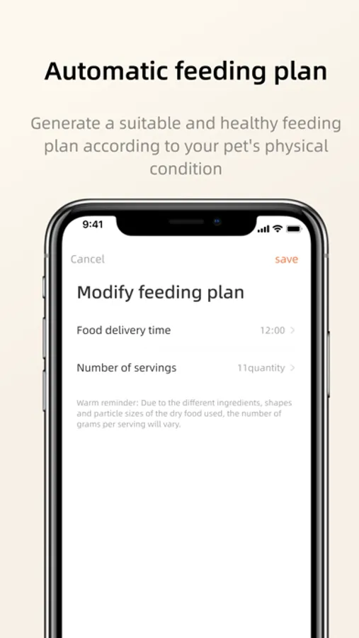 Select the pet type to generate a feeding plan, you can also manually modify the food time and number,
