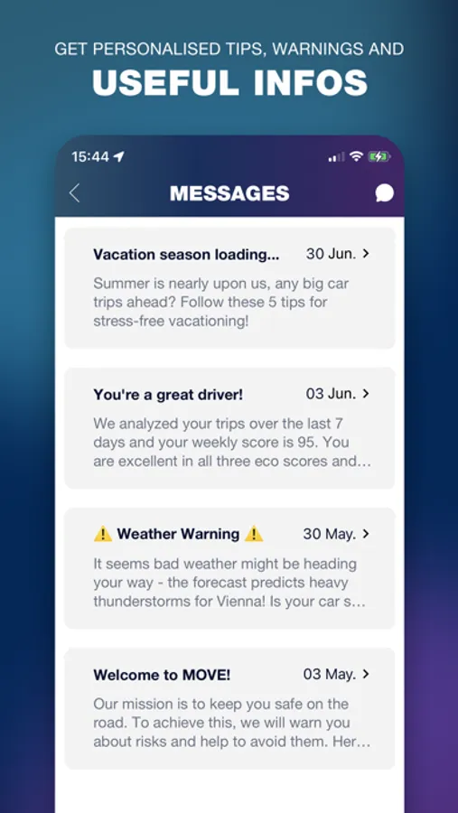 Dolphin MOVE shows you the possibilities and power of a telematics application. It detects, analyzes and displays your mobility in a safe and efficient way. Everything you need is already inside your smartphone, and no additional hardware is required. The timeline in the app gives you feedback on your driving behavior, informs you of any risks and sends you interesting messages to optimize your choice of transportation.
