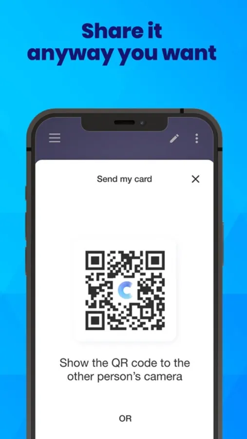 Share your card any way you want. No need for the other person to have an app installed. 100% free, no ads.