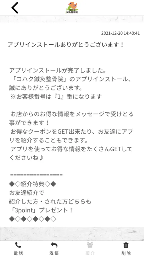 このアプリでは、コハク 鍼 整の最新情報の受け取りや便利な機能を使う事ができます。