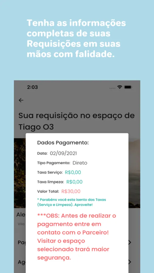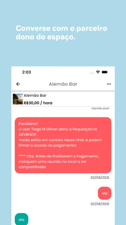 Converse por chat com Parceiro Fornecedor que disponibilizou o espaço compartilhado.