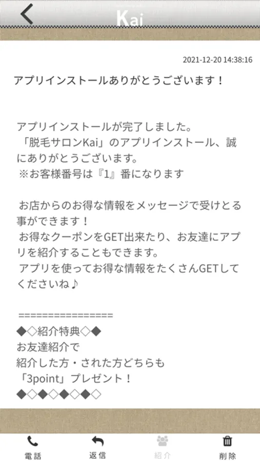 KaiのアプリをSNSを通じてお友達に紹介する事ができます。