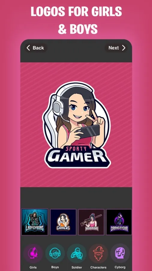 - Create the best gaming logo girl or boy with “game logo editor app”!