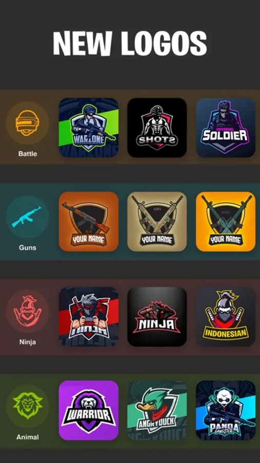 if you Are a gamer Pro in Battle royale Games ! then this app is the best for you. we have hundreds of gaming logo avatar of Popular free battles games, animal logos design ,cagoule logos, and all popular game skin like gaming logo joker.
