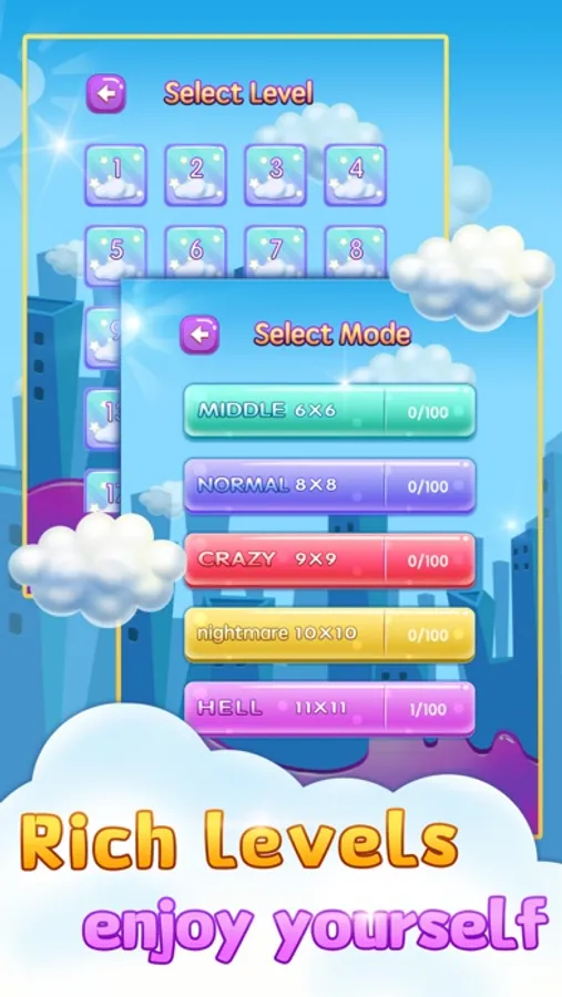 From 5*5 to 13*13 levels, let you play as much as you like!