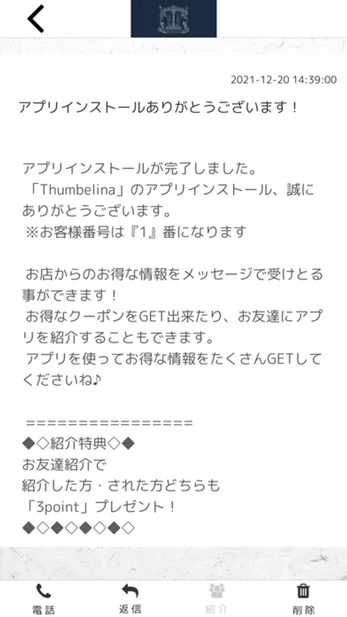 このアプリでは、Thumbelinaの最新情報の受け取りや便利な機能を使う事ができます。