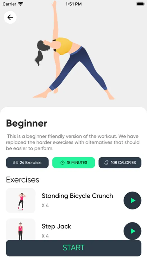 This program is suitable for beginners, in which difficult exercises are tried to be replaced with easier movements.