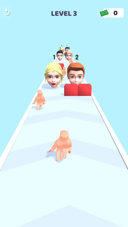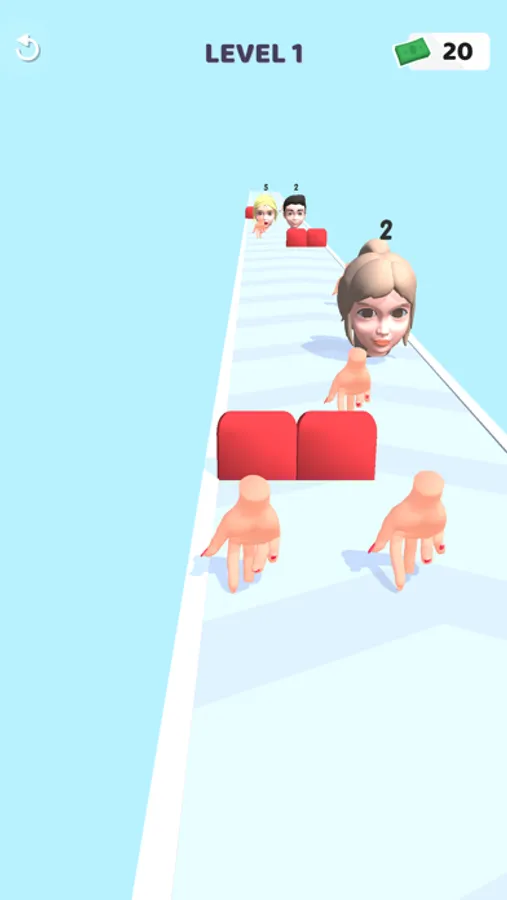 We are one hand. We collect the hands you meet on the way. We slap heads we meet with the hands we collect and we make money. Their lives are written on their heads. With each slap, one of our hands is lost and the health of his head drops. The dead head disappears and our path is opened. As the level progresses, we improve our hand.