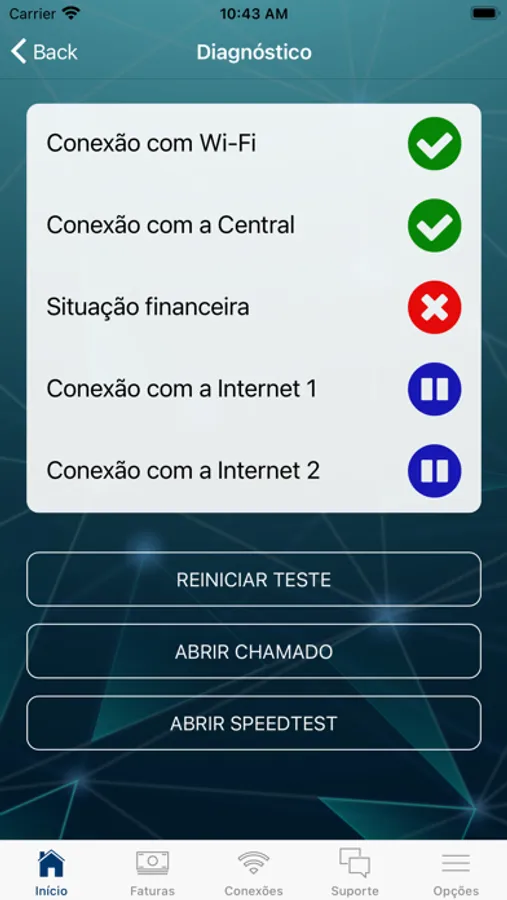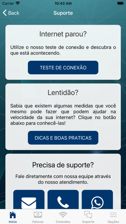 • Realização testes de conexão e velocidade;