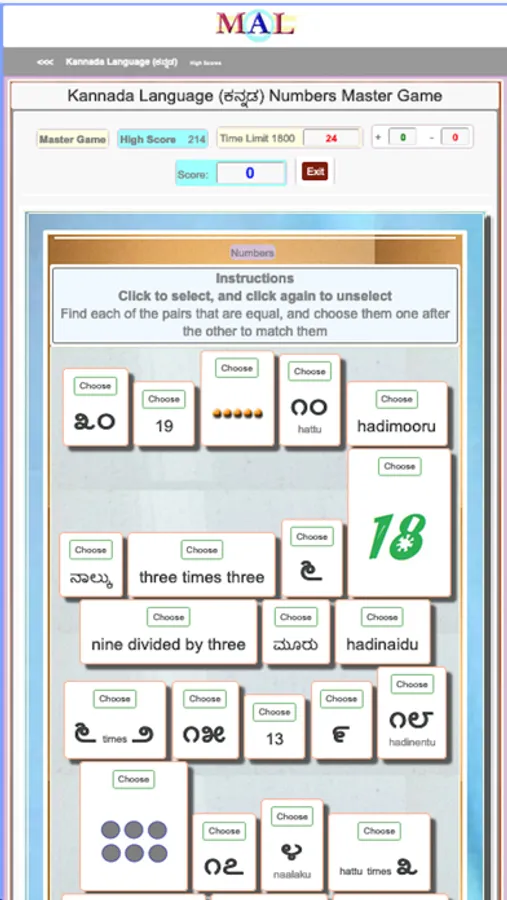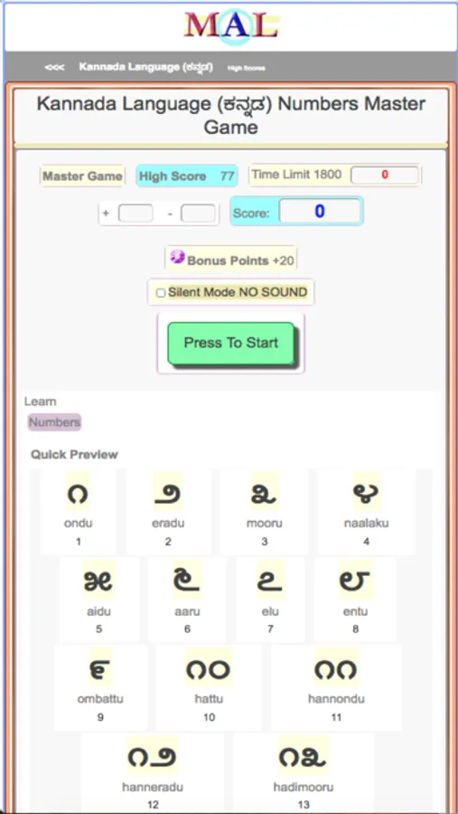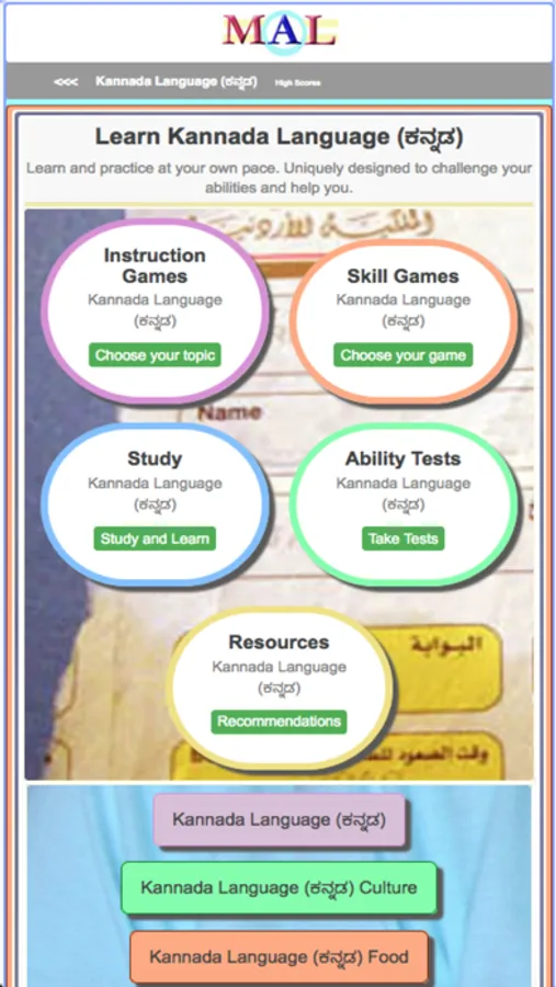 Play Kannada Learning Games, Study and Learn with online Flash cards, Take Kannada Tests