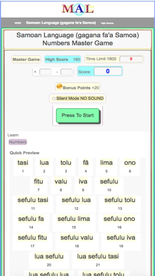 Play Samoan Learning Games, Study and Learn with online Flash cards, Take Samoan Tests